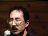 堀越哲郎さん、サカキナナオの詩に曲をつけた「七行」「酢で」「ラブレター」の3曲。2曲目を歌う前、この歌を前回歌ったとき、この日記に「素手」と書かれていたが、正しくは「酢で (with vinegar) 」と話す。(3月10日の日記の「素手」も「酢で」に修正しておきました)。