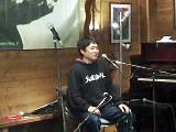 後半トップは、「朗読の会ひびき」の赤羽やよいさん。3月24日(日)にオーリアッドで開かれる宮沢賢治をテーマにした発表会の宣伝。そして、「永訣の朝」の朗読。続いて、ぼくが「雨ニモマケズ」。太田さんに伴奏をお願いする。CDの中のこの歌にも彼のピアノが入っている。つづいて、からさわちなつさん。「秋のうろこ雲に乗って」、そして前回も聞かせてもらった題名のない歌。8月6日には広島の原爆ドームの近くでこの歌を歌いたいとのこと。大月高志さん、「抱きしめたい」と「カノン」の2曲。林呉さん、以前にも聞かせてもらった「オートーハープとボールハット」。原田さん「君は愛されるために生まれた」。大島信治さん、沖縄民謡「久高」。タカヨさん、「禁煙車のバラード」。ひょっとしたら「喫煙者のバラード」か。ここで横田ゆうわさんに一言お願いする。オーリアッドのステージは狭すぎて踊ることは難しいとのことだが、是非一度、堀越さんのエスラジに合わせて踊ってもらいたいもの。