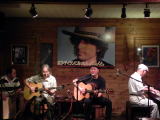 後半トップは春日淳也さん。今日昼間、オートバイに乗っていて、蛇をひいてしまい、崖から落ちそうになったという話のあと、「砂埃のブルーズ (Dust Bowl Blues)」と「天国行きの汽車」。前者はウディの、後者はブルース(スプリングスティーン)の影響がある。彼の洋楽好きな一面がよく出ている。