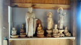 もうここは唐木沢の村。しばらく行くと、おばあさんが一輪車を押している。不審人物と思われないかと心配しながら、会釈をして通り過ぎる。しばらく行くと高台の家から人が出てきた。いよいよ警戒されているかと思ったが、よく見ると、中学時代の同級生の松沢東三君。今から、4,5年前、彼が彫った仏像を見せてもらったことがある。彼の仕事場へ行き、最近の作品を見せてもらう。前よりも、かなり腕を上げている。NHKの木彫の番組を見て独力で始めたとのことだが、これはすごい。