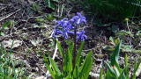 引き返すことも考えたが、左の急斜面の土手づたいに、なんとか反対側へ。土手から道に這い上がると、そこに大きな岩。その岩陰に、カタクリの花。しばらく行くと、もう一箇所、木が倒れて道をふさいでいた。ここを過ぎると右手に水仙が群生していた。久しぶりに、土筆も見た。