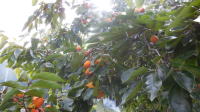 卓也の柿の木も今年は大豊作。猛暑だったせいか、とても甘い。次男の卓也がまだ3歳か4歳のとき、甘柿の種をいくつも土に埋めた。そのひとつが芽を出し、桃栗三年柿八年、いつの間にか実がなるようになった。しかし、甘柿の種を植えたので甘柿になると思っていたら、渋柿だった。このあたりの気温では甘柿も渋柿になってしまうと教えられた。しかし今年は甘い。今年の夏の猛暑、そして長く続いた残暑のせいか。