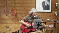 藤森和弘さん、Terry's Terry というギターをもってきた。このメーカーのギターは1台100万円以上とのこと。藤森さんのもっているのは、仄聞するに、200万近いとか。「風は旅人」「ほろ酔いで」「秋桜」など。