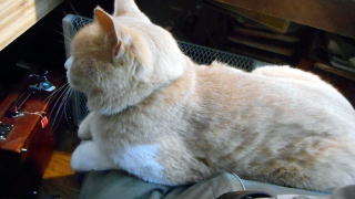 部屋で仕事をしているとフィービーが邪魔をしにくる。膝に乗りたがる。しばらく留守をしていたので、無碍に追い返すこともせず、しばらく乗せておく。夏は暑苦しいが、冬には暖房効果があっていい。