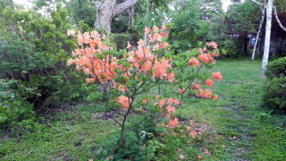 そのあと、12時まで外で働く。芝刈りをしているときにエンジ色の牡丹が咲いているのが目に入った。母が残した2種類の牡丹のひとつ。4.5年前に裏の物置の横にあったものを表に移植した。翌年から花が咲いたが、不自然な咲き方だった。なんというか、牡丹の茎や枝と花のバランスが悪かった。今年は初めて見事なバランスで咲いた。草木の環境に適応する能力には畏れ入る。