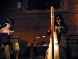「夕方のおかあさん」を練習しているところへ甕さんと澤田さん登場。しばらくして、徐々にお客さんが入ってくる。まずお二人にお願いする。甕さんのコンサティーナと澤田さんのアイリッシュハープで「シーレック・シーモア」「ホーンパイプ」。ゆったりとしたいい気持ちにさせられる音楽。