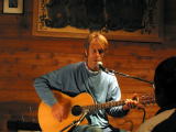 アコースティックの会場は近くのリフトのチケット売り場の2階。すでに演奏が始まっている。PAシステムが少し貧弱で、しかも部屋の構造ゆえか、音がこもっている。