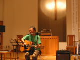 長谷川和雄牧師夫妻のお話では、京都、大阪など彼らが赴任した教会では、常に地元のミュージシャンたちとのコンサートを開いてきたとのこと。このコンサートには、牧師さんの娘さん二人も参加する。一人が「アメイジング・グレイス」や自作の歌を歌い、もう一人がピアノを弾く。赤羽真理さんがベース、教会員の若者がギター、太田裕士さんがサックスでサポート。なかなかの演奏。歌もいい。