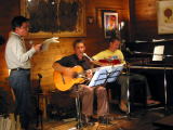 その後しばし歓談。初めてきた方々も大いに楽しんで下さった様子。是非またきてもらいたいもの。閉店後、誰もいなくなった暗い客席に向かって、しばらく、「果樹園の道」などの練習。