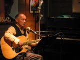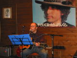 祖山さんのあと、ぼくが「果樹園の道」「カムサハムニダ、イ・スヒョン」「私は風の声を聞いた」、そして大月高志さんのサポートで「千の風」。最近入手したマーティンD35を使う。「カムサハムニダ」のとき、「音が鳴りすぎて弾きづらい」と感じた。あとで、それはギターのせいではなく弾き方のせいと判明。いつもはフィンガーで弾くのに、ピックで弾いていた。続いて大月さんに「カノン」をお願いする。ここで前半終了。