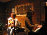 その後、明日の諏訪での豊田勇造コンサートを中心になって担っている岡谷の中島さん、諏訪のボブ鈴木がやってくる。ここでボブが「川をくだって」「もしも賀茂川(諏訪湖)がウイスキーなら」「イマジン」など何曲か歌い、豊田君がリードをつけた。ボブが気持ちよさそうに歌っている。とてもいい雰囲気だ。豊田君の乾いたギブソンのサウンドがオーリアッドの木の壁に反響する。とてもきれいだ。カウンターにすわっていた長島君が思わず「かっこういい」とつぶやく。