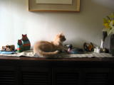 朝起きて先ず第一に外を見る。雨。猫たちも退屈している。