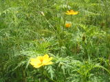 数年前、碌山美術館で買ったキバナコスモスも咲き始めた。