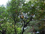 昨日は、カミキリムシだった。今日はアゲハチョウ。郵便をチェックしに外に出たら、ノウセンカツラの花に黄色いアゲハチョウがとまっていた。あわててカメラを取りに行き、戻ったらもういない。しばらくして、サンデッキの上を飛んでいるのが見えた。サンデッキの隙間から顔を出している山椒の先端にとまろうとしている。何度かとまったが、羽を広げず、すぐに飛び上がるので、うまく撮れない。赤いノウセンカツラにとまっていたときは、黒で縁取りされた黄色い羽をしっかり広げていた。その写真を撮れなかったのが残念。アゲハチョウは英語では
