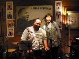 Have a Dream」と「祈りの歌」。丸山さん、昨年のキング牧師の日コンサートのために書かれた「さあ今から」とお母さんの冥福を祈って書いた「満州の丘」。先日一周忌がすんだばかりとか。夏目君「君が笑う夢を見たよ」、そして、レミさんが加わって、2時間前に書いた歌を一緒に。そしてレミさん「どこか遠くに」。前半も後半もこの二人の若者のリズムと歌声にオーリアッドは大いに盛り上がった。藤森さん「愛音」と「歌えるうちに歌っておきたい・・・」という言葉で始まる「メッセージ」。赤羽さん「今すぐに」。そして最後、赤羽、藤森、丸山、大月の4氏で「あの素晴らしい愛をもう一度」と「22歳の別れ」。17日の「キング牧師の日チャリティーコンサート」のみんなで歌うコーナーのリハーサルを兼ねて。すばらしい演奏。4人のフォークグループとしてもやってゆけそう。
