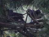 夕方、松本から戻り、家人に聞くと、雛鳥は一時どこかへ行っていたが、4時ごろ戻ってきて、今松の木にいるとのこと。下の最後の写真は家人が撮ったもの。