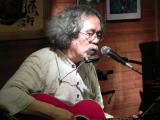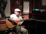 そのあと、原田さん。「あなたのなされることは」と「トロイメライ」の演奏。前者は「伝道の書」の一節から。丸山さん、新曲「70歳になったのだ」。会場爆笑の渦。カウンターにすわっていた原田和夫さんは、この歌の言葉にずっとうなずき通し。この歌は丸山さんの最近の歌の中では最高傑作。5月21日に70歳になったとのこと。ボブ・ディランはその3日後に70歳。名取芳夫さん、やおらハーモニカを取り出し、なにやら吹き始めた。「山小屋の灯」のメロディ、そしてその歌を歌う。ハーモニカも歌もよかった。最後にもう一度ハーモニカで締めたらもっとよかったかも。