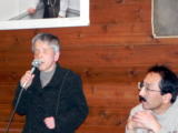 ぼくがサウンドチェックをかねて「千の風」「旅立つおまえに」を歌ったあと、丸山さん、久々に「三角広場に桜咲くころ」、「ぶどう畑の散歩道」、そして「雪のかくれんぼ」。いずれも三角広場と関係ある歌。松尾晃さん、上浦さんのギターをバックに poetry reading。60年代から70年代にかけての、信州の北から南までのカウンターカルチャーを支えた店や人物を網羅した文章「あきら伯父さんのカルチャー講座文学編 No. 4 幻の街―信州編」を読む。「不良」が文化を創るなど、刺激的なフレーズ満載。なつかしい名前もいくつか登場。