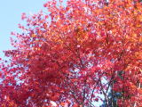 朝起きて、階下へ降り、窓の外を見たら、真っ赤な紅葉が目に飛び込んできた。曇り空ではあるが、雨上がりの爽やかな朝に赤が映えている。その赤をキャプチャーしようと、シャッターを押したが、ぼくのカメラではその赤は捕らえきれない。裏山もかなり色づいてきた。